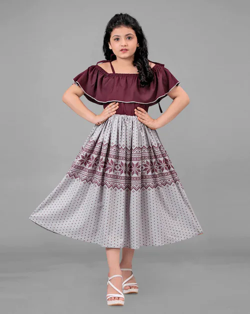 All Season Washable Designer Printed Blue One Piece Dress For Ladies/ IND